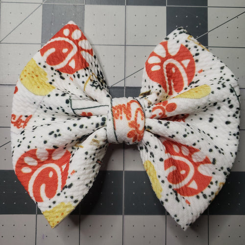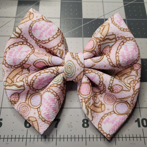 The hardware all Fabric bows come with are, Alligator Clips, unless you have specified you would like a nylon headband or Barrette in the other options bar!